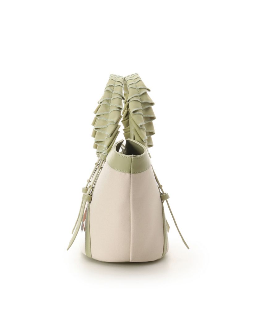 扇形のお洒落なシルエットに大きめな持ち手のフリルが華やかさをプラス。