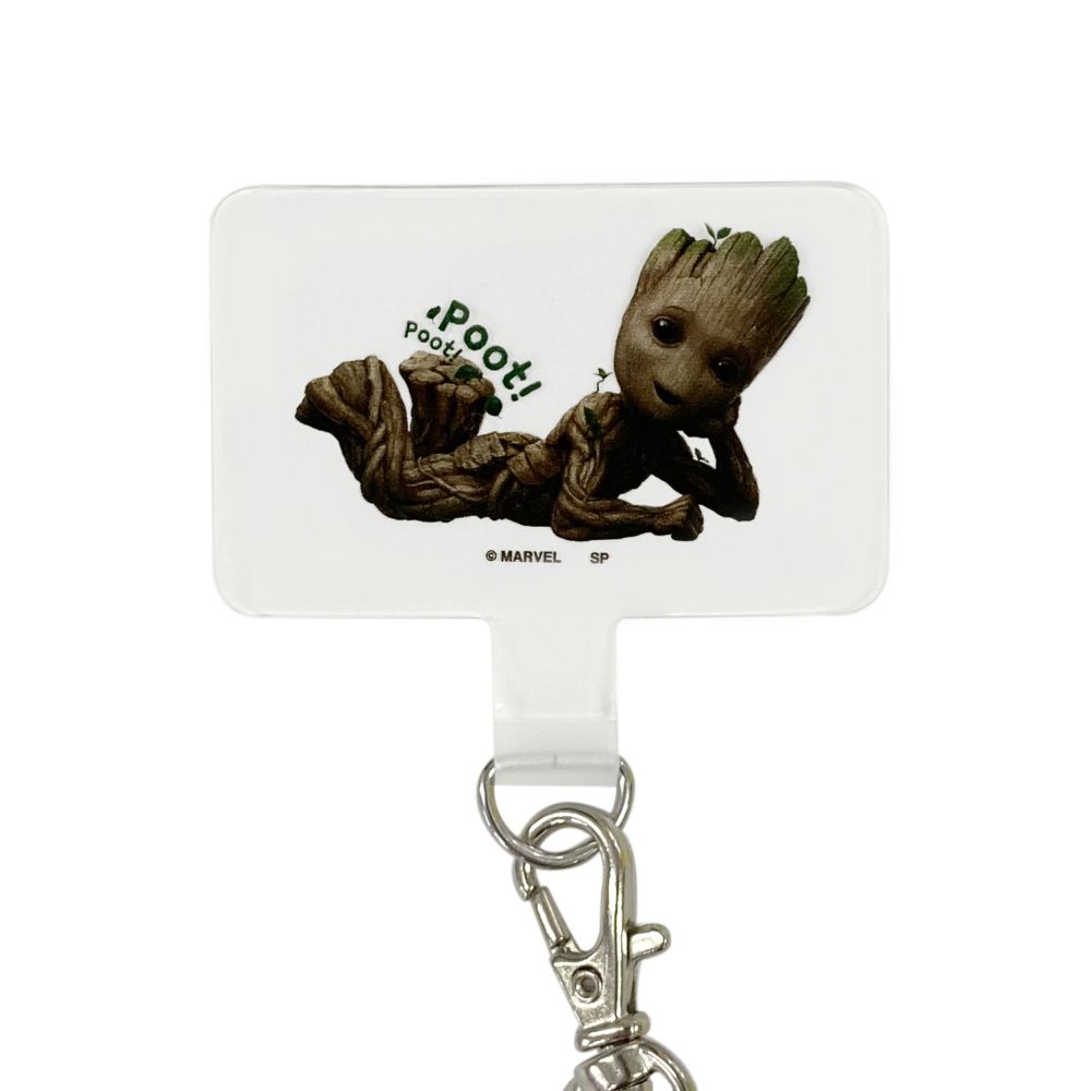 マーベルドラマシリーズから「グルート」のストラップ&フォンタブ。フォンタブとは、ケースとスマホ本体の間に挟み込むだけで、スマホにキーホルダーやストラップを付けられるようになるアイテム。人気のスマホショルダーケース「ストラップホルダー(フォンタブ)」に早変わりします。