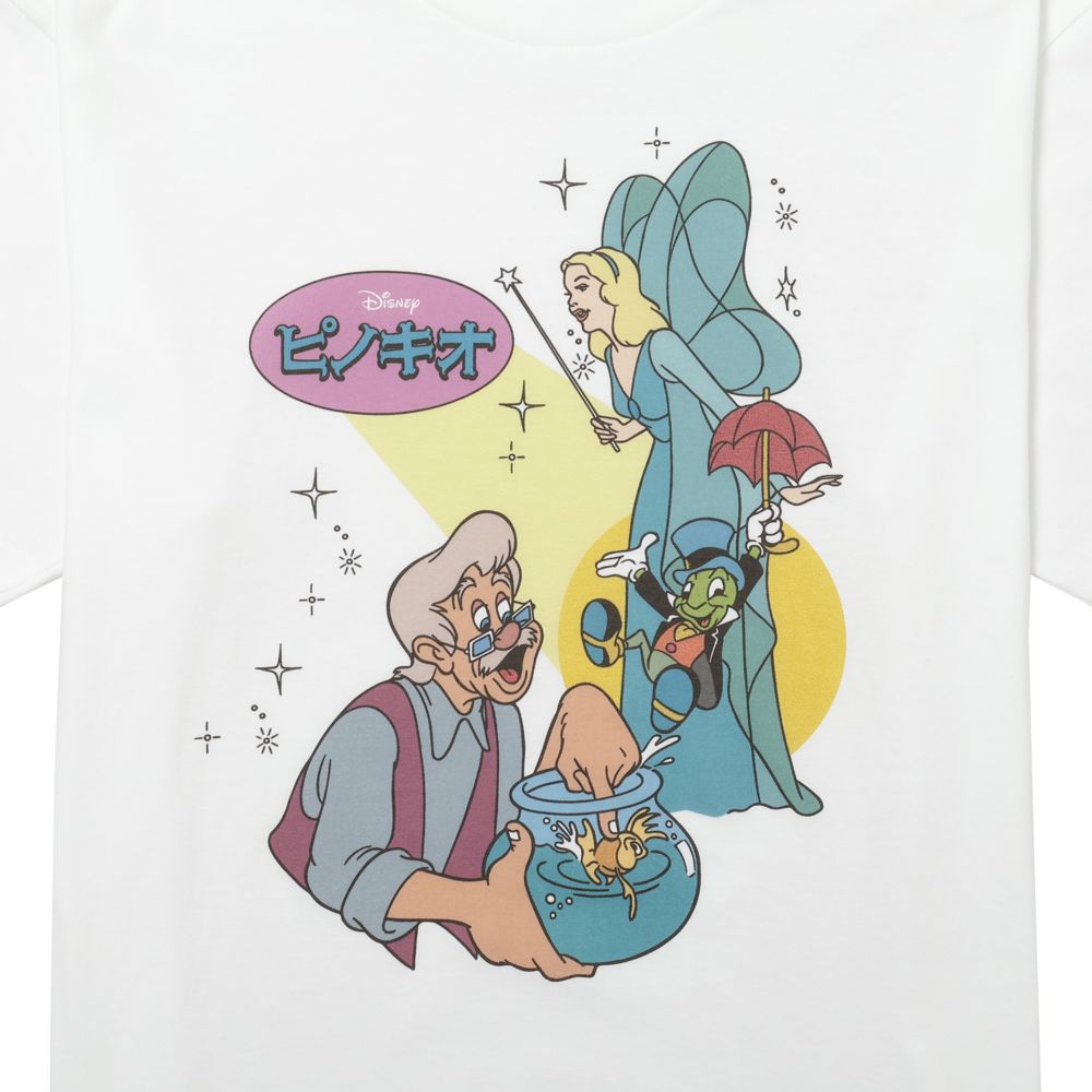 【NOSTALGICA 100シリーズ】ディズニー100周年を記念して『NOSTALGICA』よりスペシャルな企画が登場です。歴代のディズニー作品にスポットをあて、Tシャツを100種類発売いたします。あなたのお気に入りの作品、キャラクターを探してみて下さい。ヴィンテージライクなプリントをフロントに施したオリジナルデザインで、カジュアルに着こなせる1着です。サイズは「イマドキ」っぽさを感じられるゆったりとしたLサイズ。1枚で着るのはもちろんレイヤードで着たりなど、いろんなTシャツスタイルを楽しめます。ディズニーファンのハートを刺激する、他では手に入らないデザインのTシャツです。ピノキオ