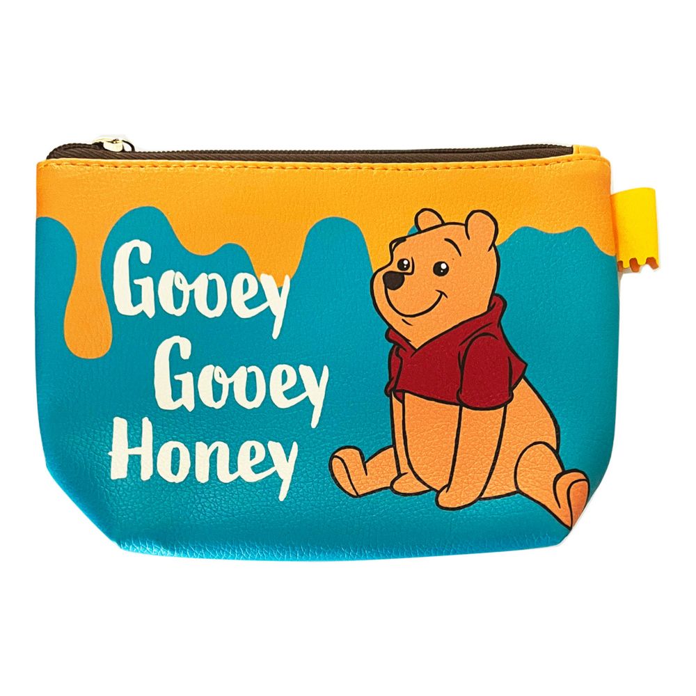 ディズニーくまのプーさんの舟形ポーチが登場。裏面も「Winnie the Pooh」のかわいいロゴ入り。メイク道具や歯ブラシなどもすっきり収まり、ポーチ代わりにしてカバンの中の小物整理も簡単OK。他にも同シリーズのパスケース、転写巾着もありますので要チェックです。