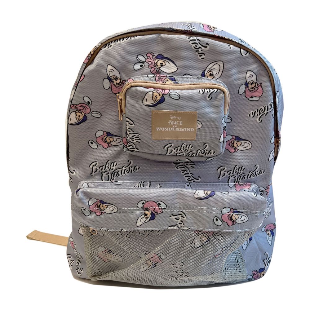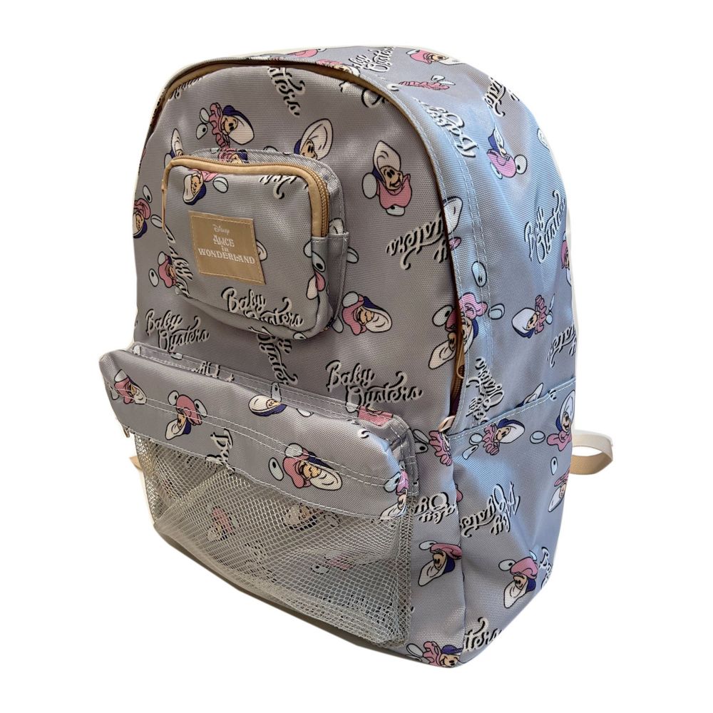 ディズニーからおしゃれな総柄デザインのリュックが入荷♪外側にはメッシュの大きめポケットと、お家の鍵のような小物を入れるのにぴったりのファスナーポケットと、内側にもファスナー付のポケットが付き。背中にあたる部分はメッシュになっているので、通気性も良く長く背負っていても疲れにくくなっています。マチもしっかりあって荷物がたくさん入るので、デイリーユースにはもちろん、旅行にもぴったりのアイテムです。