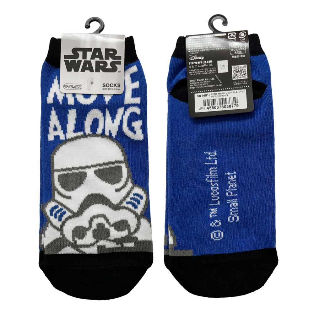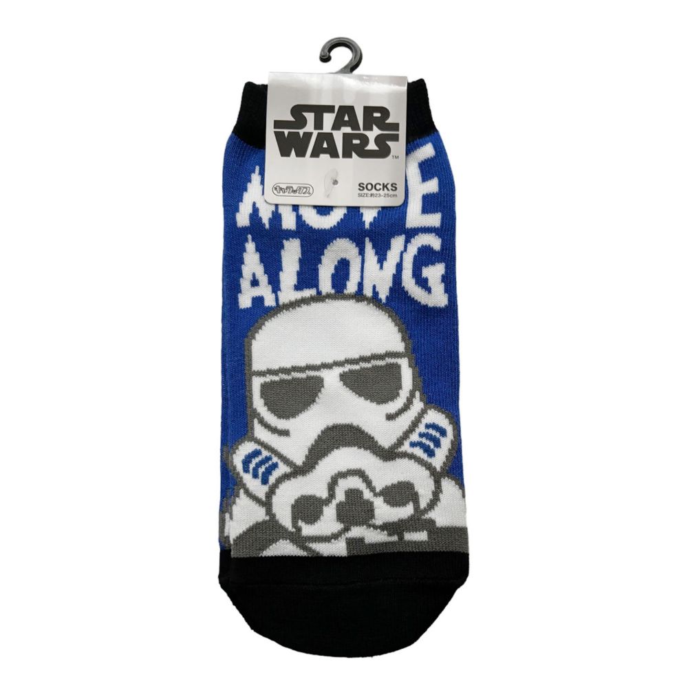 STARWARSのソックス(キャラックス)です。くるぶし丈で足の甲部分のキャラクターがポイントになっててとってもカワイイ靴下!シューズを脱いだ時のちょっとしたアイキャッチになります。スター・ウォーズファンにはオススメの靴下で、サイズ は 約23~25cmです。