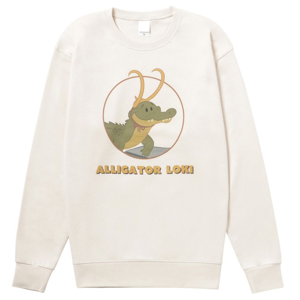Diseny+で配信中のMARVELドラマシリーズ『LOKI』デザインのスウェット。トレンドのビッグシルエットのクルーネックです。人気のロキワニ柄でコーディネートしやすい人気のナチュラルカラーです。