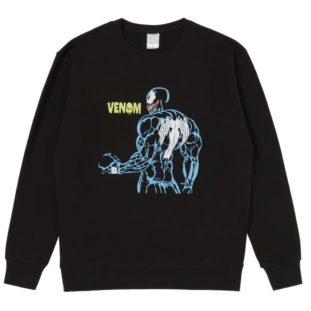 MARVEL POPカラーシリーズスウェット。トレンドのビッグシルエットのクルーネックです。スパイダーマンのヴィラン、ヴェノムのクールなデザインです。