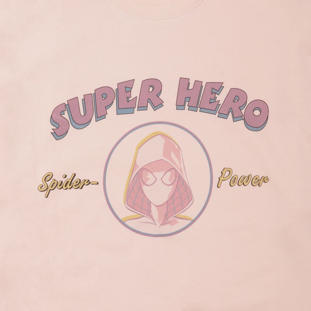 MARVEL POPカラーシリーズスウェット。トレンドのビッグシルエットのクルーネックです。カレッジデザイン風のスパイダーグウェンデザインです。