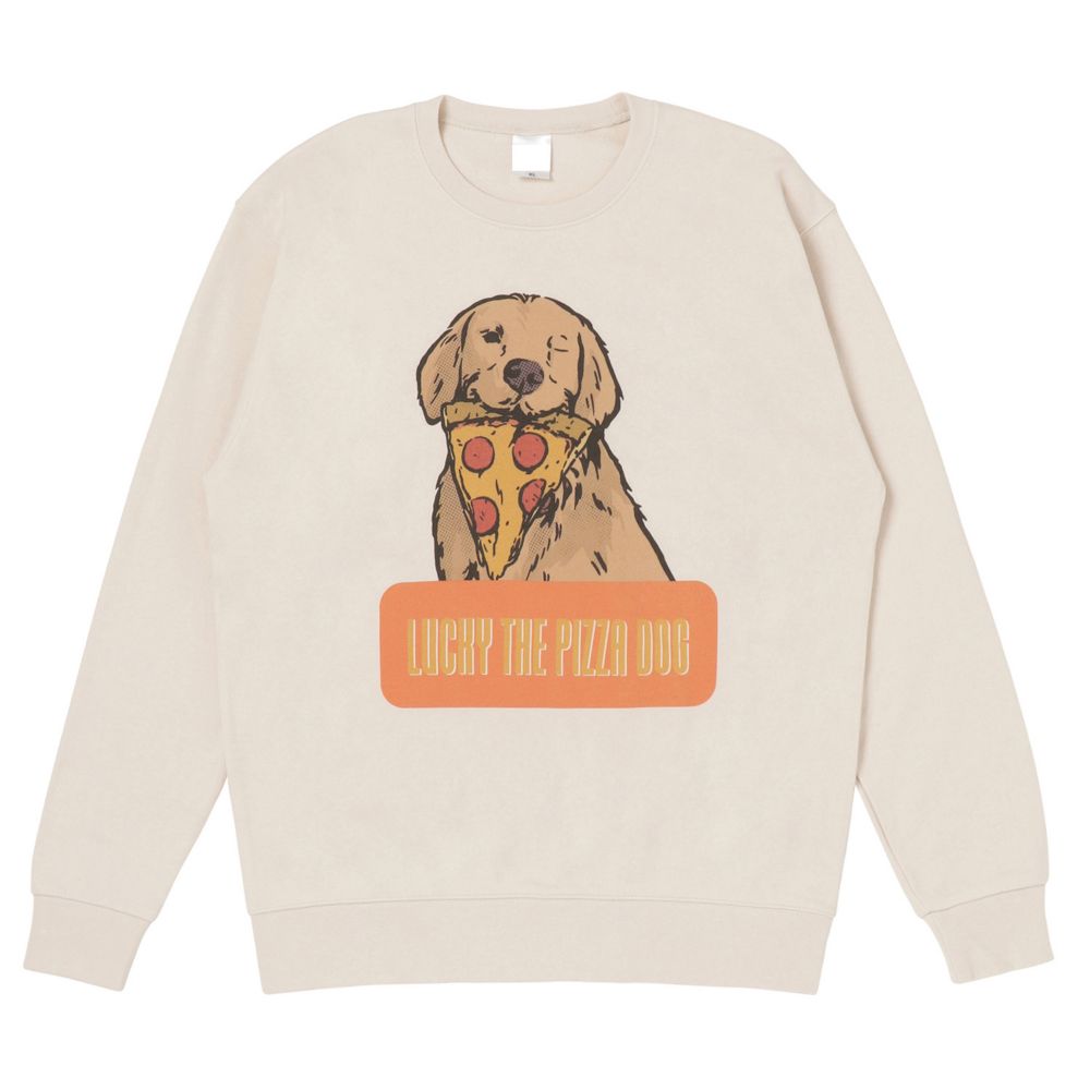 MARVEL POPカラーシリーズスウェット。トレンドのビッグシルエットのクルーネックです。Disney+のドラマシリーズ『ホークアイ』よりあの、ピザが好きな犬のデザインです。