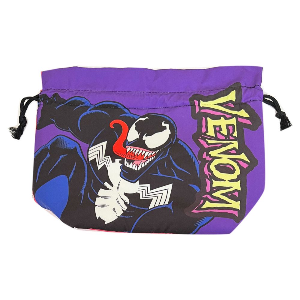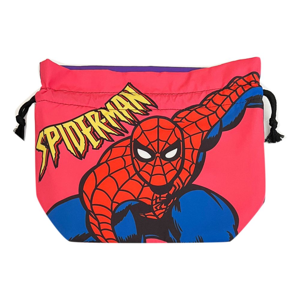MARVELキャラクターのマチ付き巾着☆マチが広いのでコスメやエチケット用品などの小物の整理に便利です。内側はコーティング記事のため、汚れのふき取りも可能です!