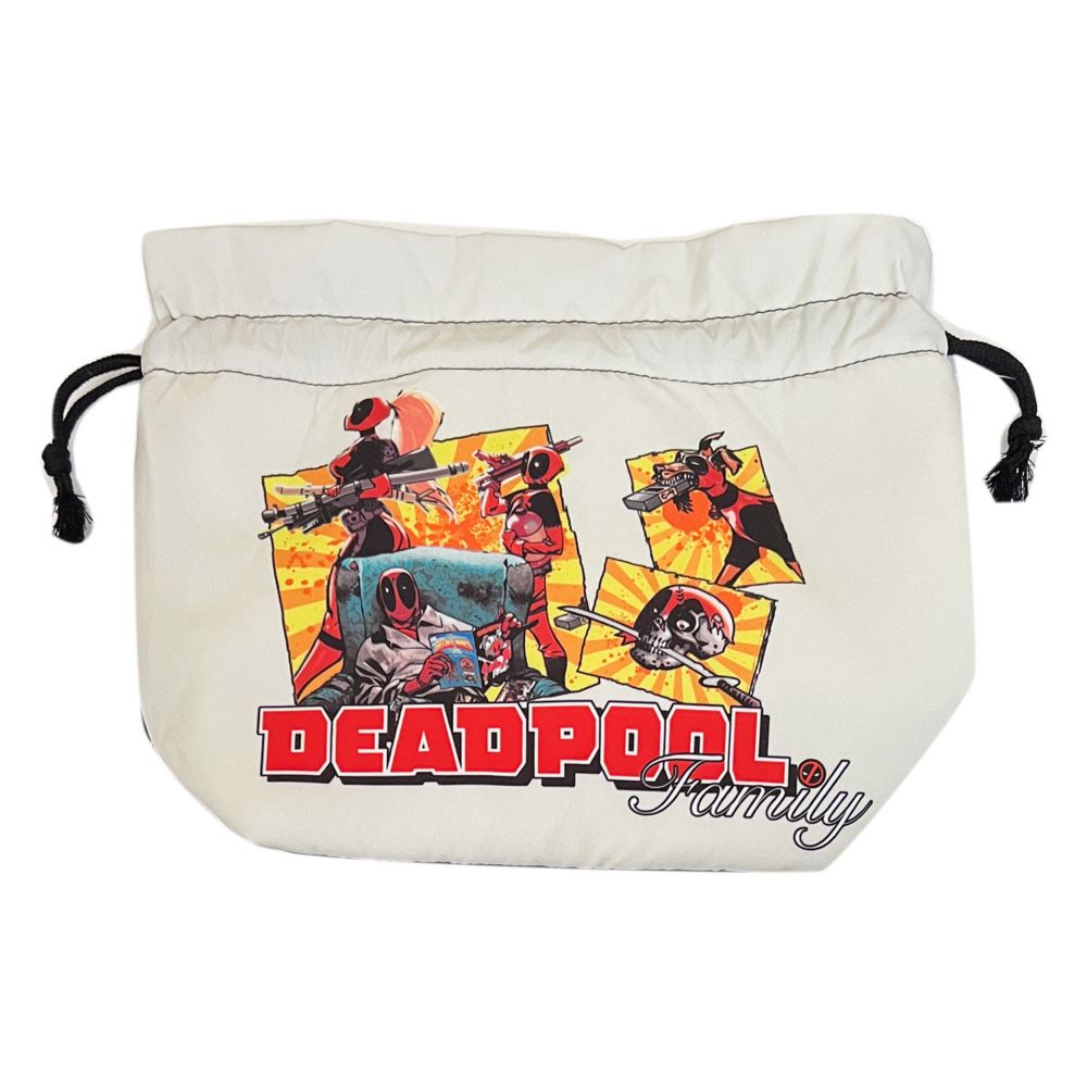 MARVELキャラクターのマチ付き巾着☆マチが広いのでコスメやエチケット用品などの小物の整理に便利です。内側はコーティング記事のため、汚れのふき取りも可能です!