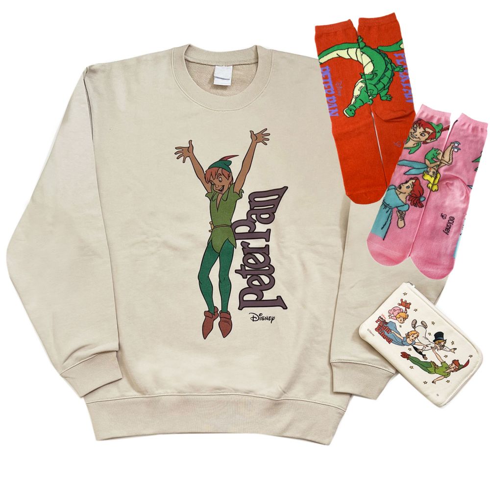 ディズニー/ノスタルジカのピーター・パン スウェット&雑貨の3点セットです。(スウェット、ポーチ、ソックス×2の3アイテムセット)