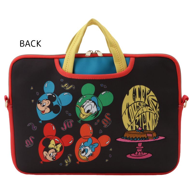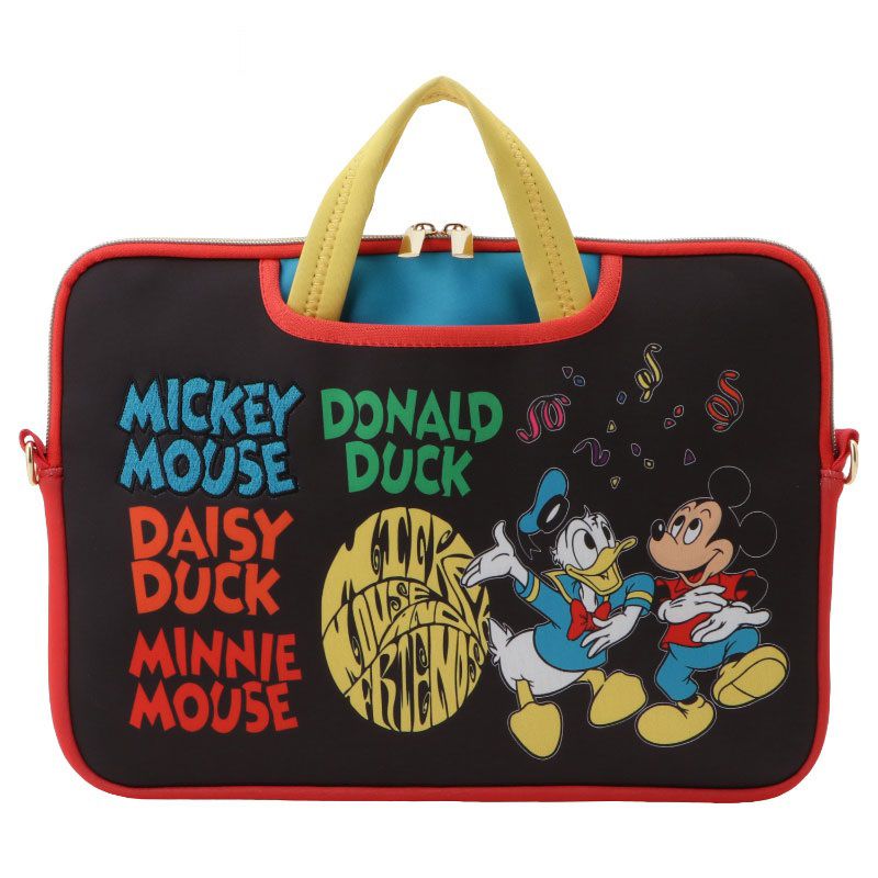 ノスタルジカ/ディズニーキャラクターのPCケース。ちょっぴりクッション性があるネオプレーンのような柔らかくて持ちやすい素材なので、パソコンやタブレットなどの大切な機器を衝撃やキズから守ります♪持ち手もしっかりしていて開閉部も大きく開くので、中の物の出し入れがしやすいのも嬉しいポイント!内側は3つに仕切られたメッシュポケット付きで、コード類や筆記用具もすっきりまとめられます。バッグ外側の持ち手のところもポケットになっているので、携帯電話や家の鍵などもサッと取り出せるのでとっても便利♪バッグの両端にはショルダーストラップをつけられる金具付き。※ショルダーストラップは別売りになります。