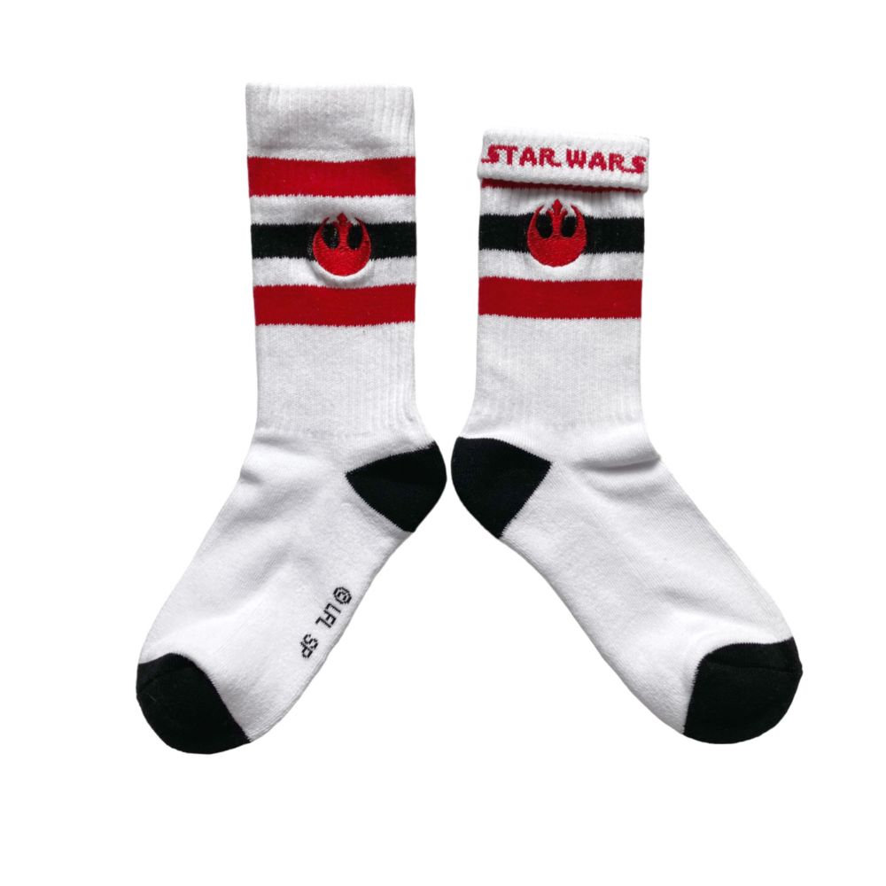 銀座で開催中のスターウォーズポップアップストア販売の新商品が入荷しました!刺繍とラインがポイントのスポーティーなデザインのクルー丈ソックス。折り返すとロゴが現れるデザインです。帝国軍エンブレムと反乱軍エンブレムとマンダロリアン/グローグーの3種類。