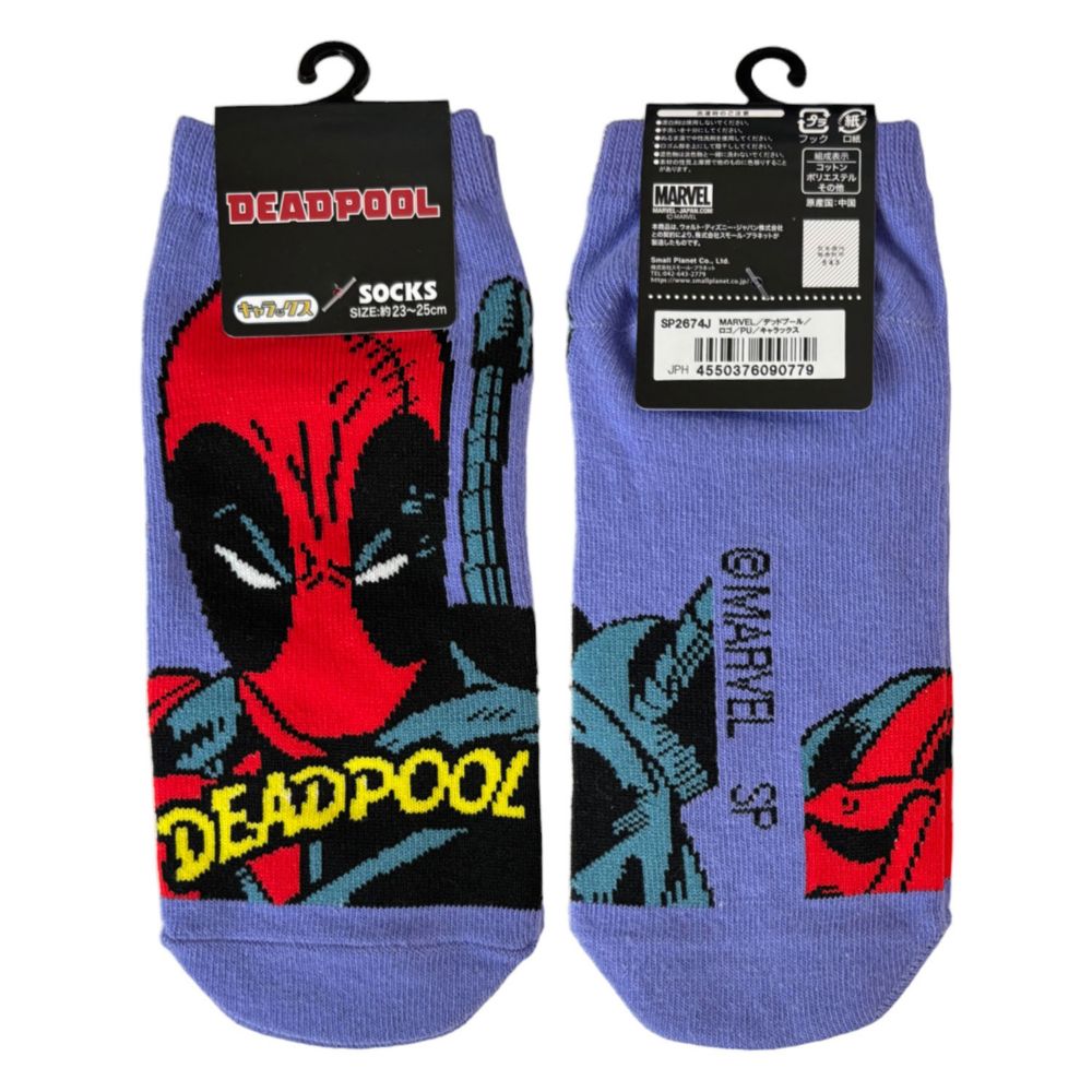 MARVELキャラクターソックス 。くるぶし丈のショートレングスで、キャラクタープリントがシューズを脱いだ時にアイキャッチになり、隠れたオシャレポイントになります♪