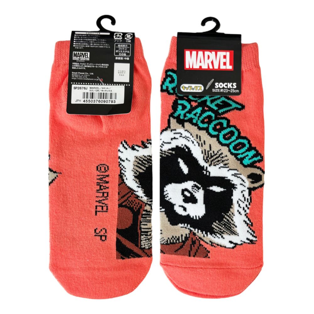 MARVELキャラクターソックス 。くるぶし丈のショートレングスで、キャラクタープリントがシューズを脱いだ時にアイキャッチになり、隠れたオシャレポイントになります♪