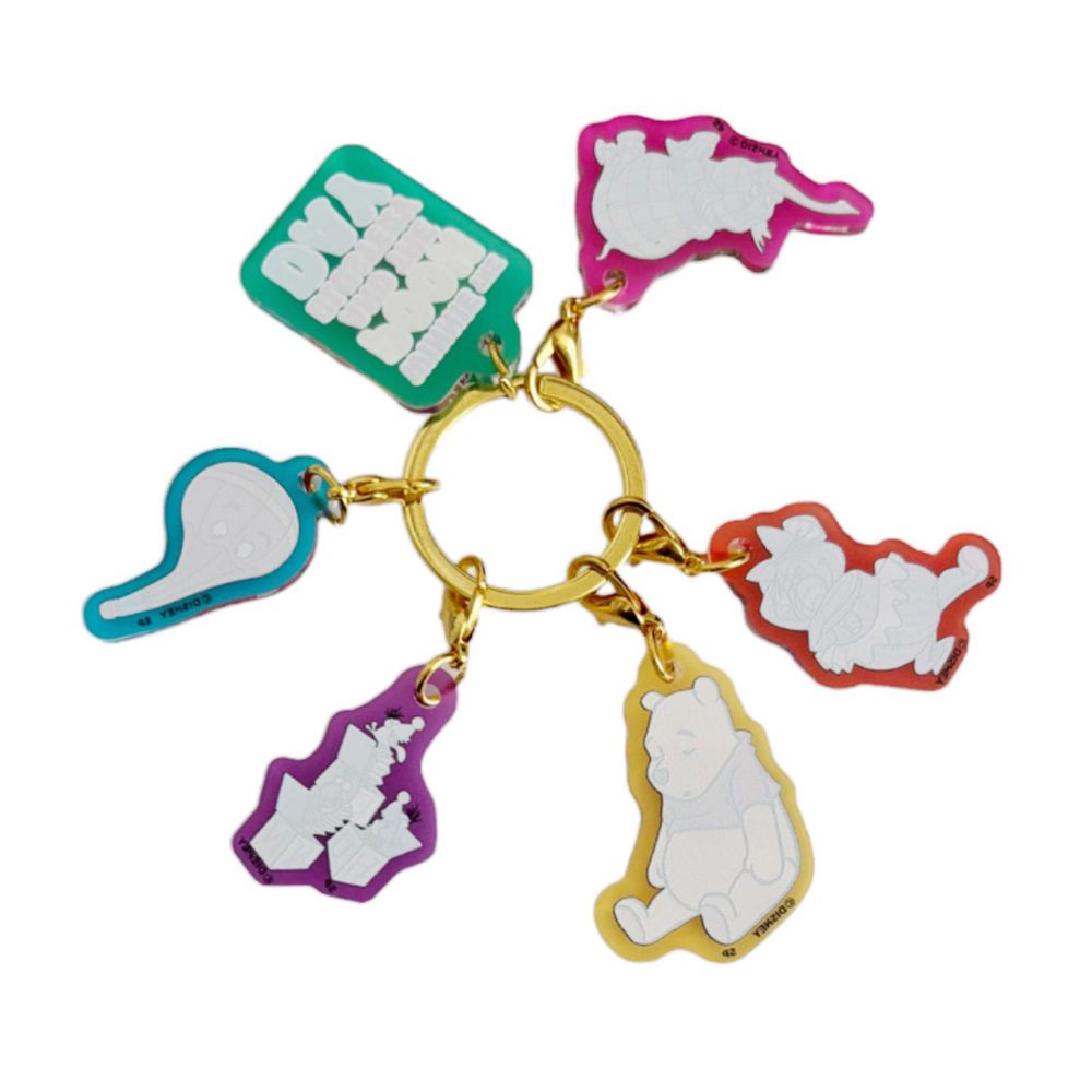 ディズニープーさんのアクリルキーホルダーの登場です。サークル状に6デザインが付いた可愛いキーホルダーです。背景は半透明で、ロゴプレート以外は取り外し可能。鍵に付けるのはもちろんバッグなどに付けても可愛いワンポイントになり、ファンの心を刺激するアイテムです♪