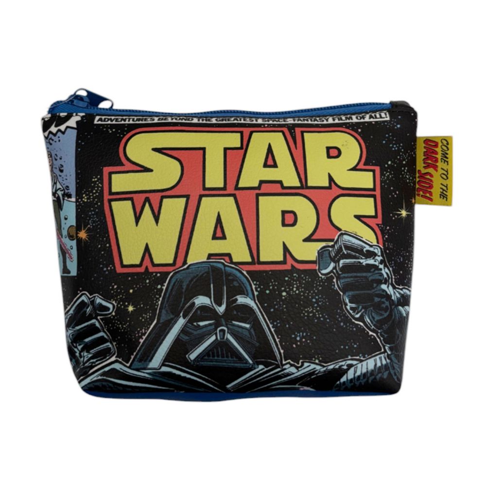 スター・ウオーズから新デザインの舟形ポーチが登場!しっかりした合皮素材なので使い勝手も便利!カラフルな色使いにビンテージコミックテイストで描かれたアートがマッチしてポップな印象。コミック調イラストのポーチはマチもあって、細々とした物を収納するのにぴったりです♪内側の生地のカラーリングや織ネームがアクセントになっているPOPなポーチです。