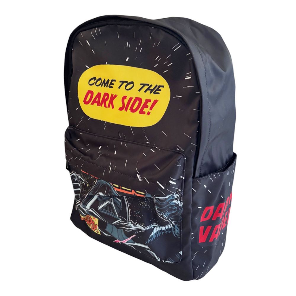 スター・ウォーズから注目のバックパックが登場!POPなロゴやイラストが目を引くデザイン♪リュックの表側前面にファスナー付きポケット、側面にもポケットがついていて収納力も抜群。通学などのデイリー使いとしてはもちろん、お出かけ用にもぴったりです。