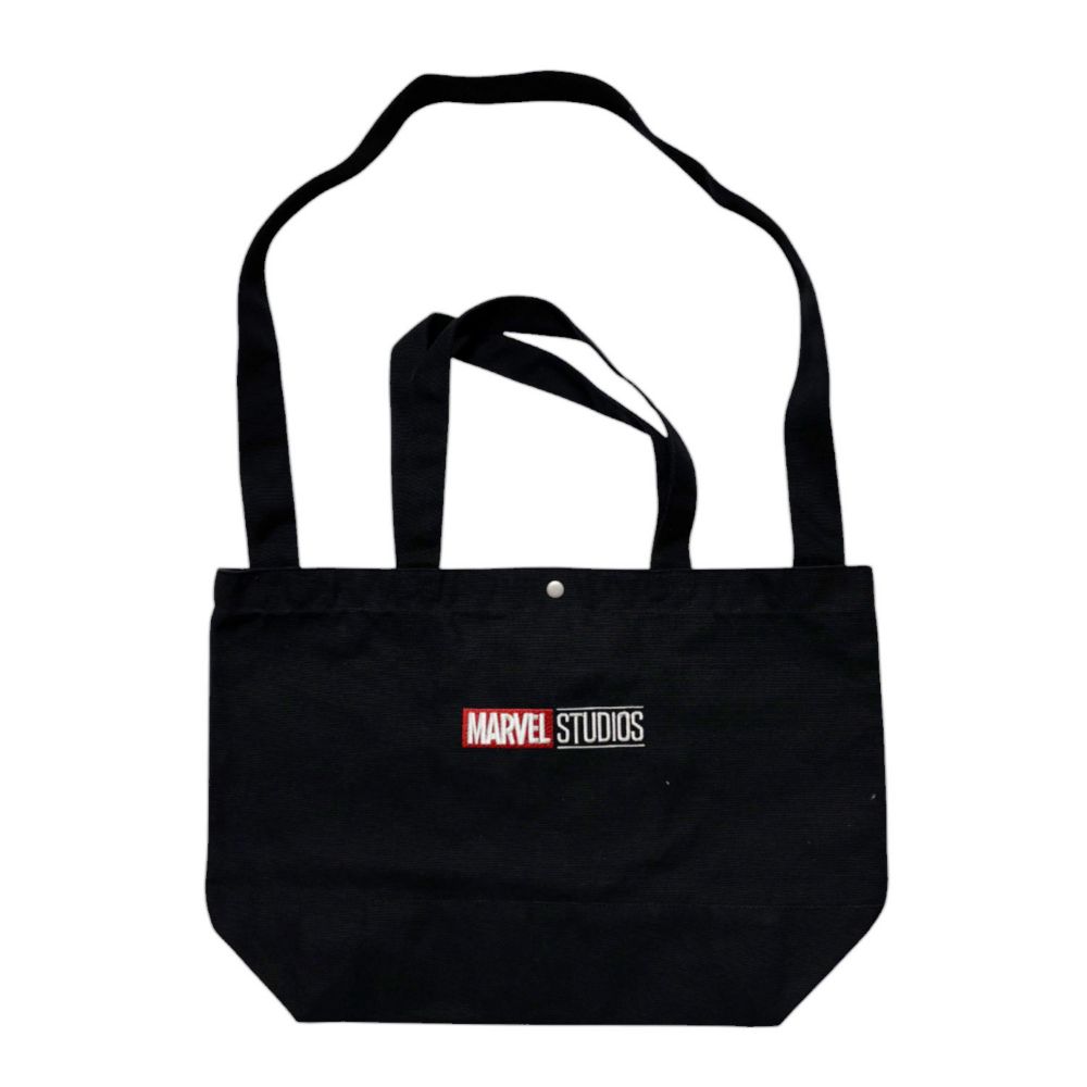 マーベルスタジオロゴの2wayトートバッグ。手提げと肩掛けの使い分けが可能。