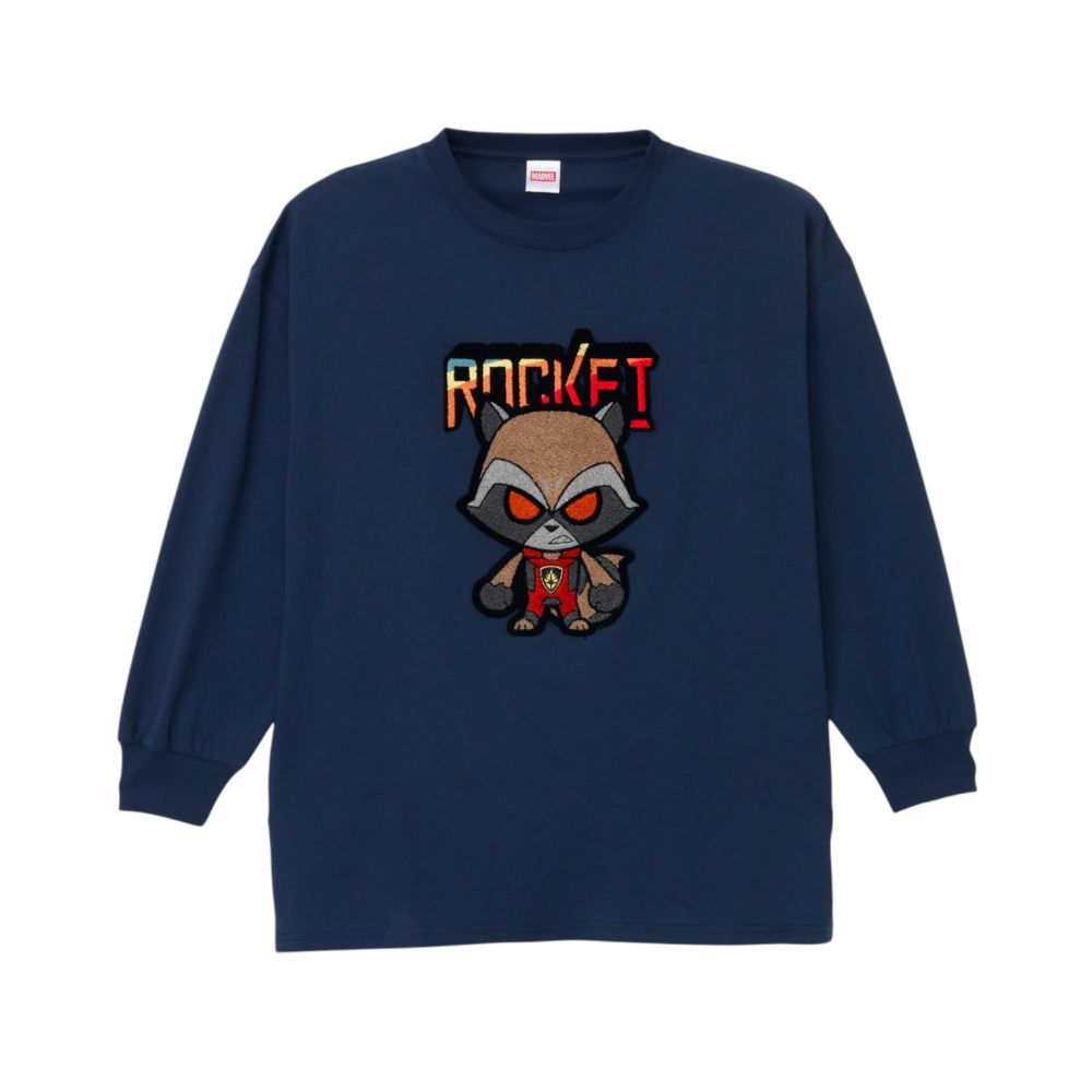 フロントとバッグに人気キャラクター「ロケット」が刺繍されたデザインのロンT