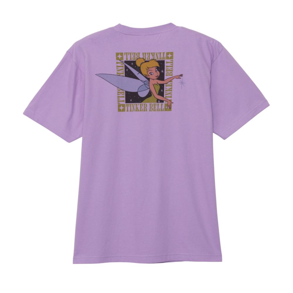 フロントには、“TINKER BELL”のロゴに囲まれたフレームから、上品に姿を覗かせるティンカー・ベル。さらにバックにも愛らしいティンカー・ベルがあしらわれ、前後で世界観を感じつつ遊び心ある一枚に仕上がっています。