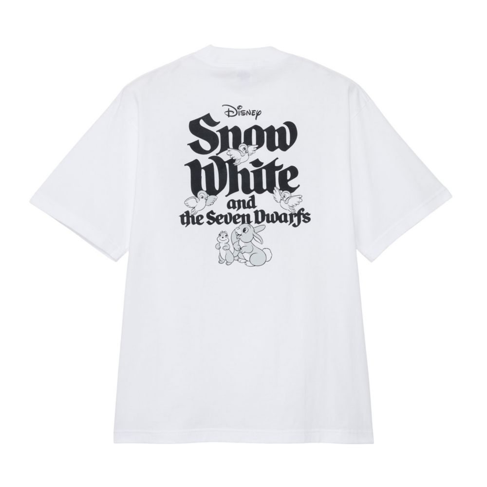 ノスタルジカの新作「白雪姫」デザインのTシャツです。正面の胸元には動物たちのワンポイントがあしらわれ、背面には「Snow White」の文字とともに、うさぎやりす、小鳥たちが愛らしくプリントされており、後ろ姿まで楽しめる特別な一枚です。肌ざわりのよい柔らかな素材で、通気性も抜群。ゆったりシルエットがこなれた雰囲気を演出し、一枚でも重ね着でもサマになる、着回し力の高い一着です。ディズニーファンのハートを刺激する、特別なデザインのTシャツです。