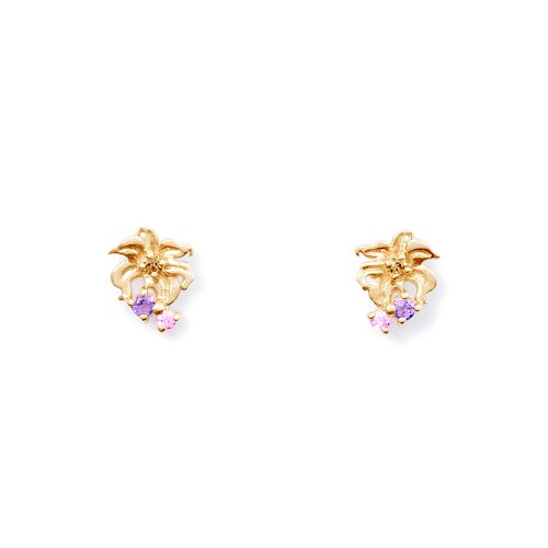 物語のキーとなる光る魔法の花のモチーフとラプンツェルをイメージした3石のカラーストーンを組み合わせて華やかなデザインに仕上げました。