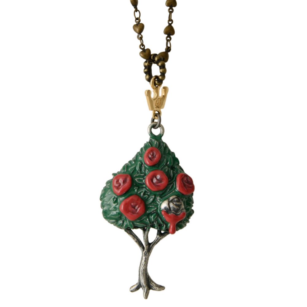 赤いバラが好きなハートの女王のために、ペンキで赤く塗った白薔薇のネックレス。
