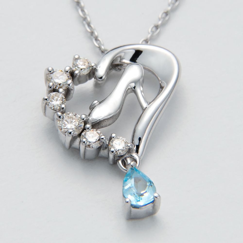 ハートを描くダイヤモンドと揺れるブルートパーズが女性らしさを引き立てる大人の女性にぴったりのジュエリーです。