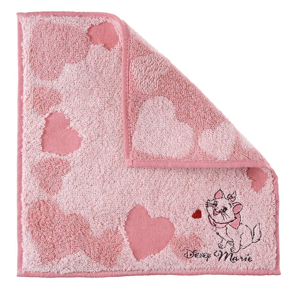 ロマンティックなハート柄のミニタオル。両面パイルでふんわりした手触りのタオル生地です。キャラクターのワンポイント刺しゅうがディズニーならではの遊び心を添えています。
