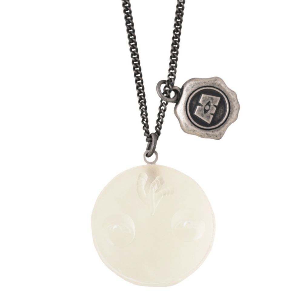 「M」のロゴマークが入った、ロウインのチャーム付き。