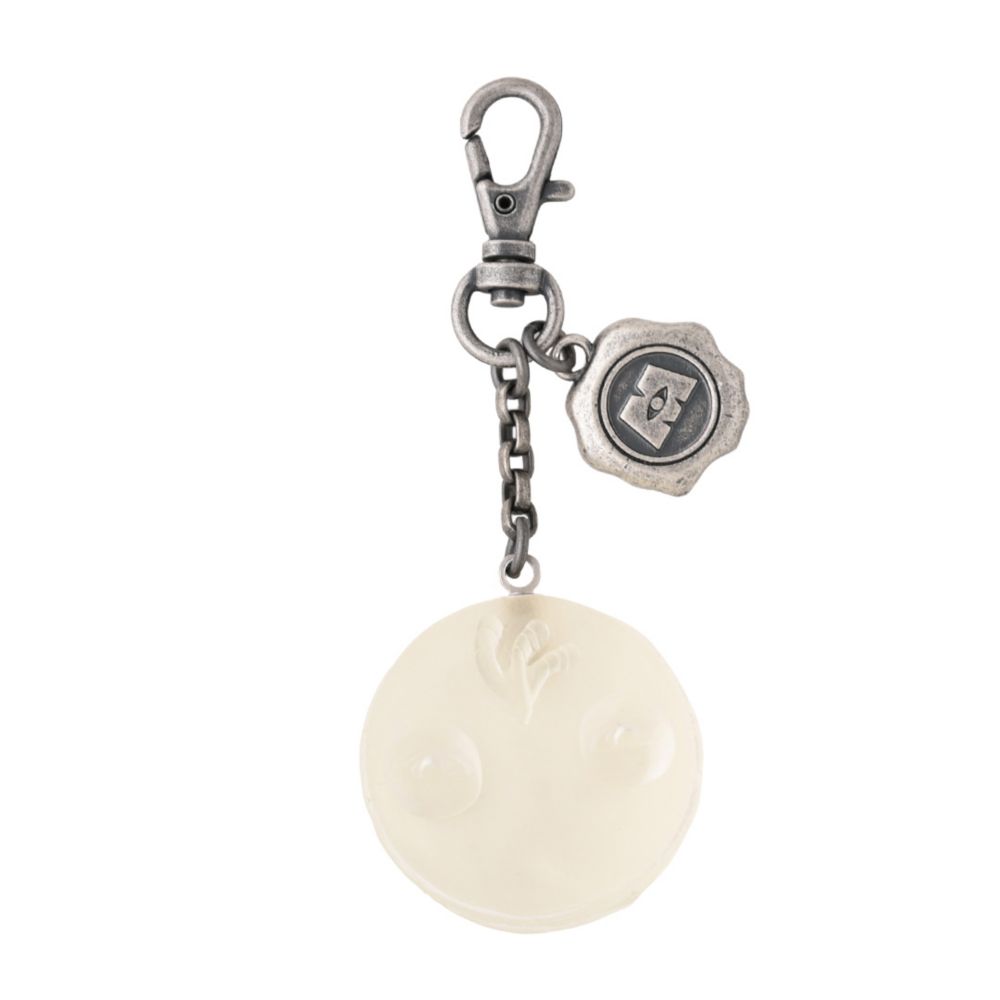 「M」のロゴマークが入った、ロウインのチャーム付き。
