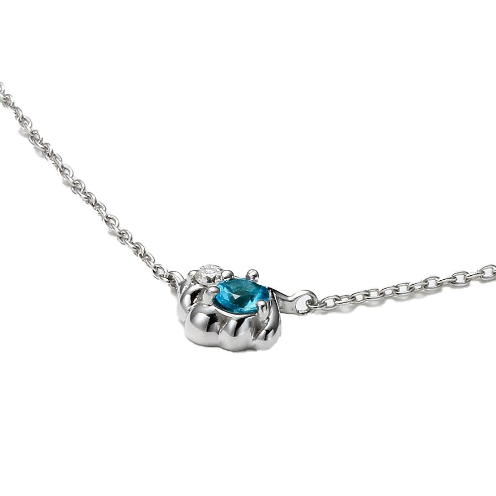 トップ:K10WG、ロジウムメッキ/ダイヤモンド0.01ct、アクアマリン/チェーン:K10WG