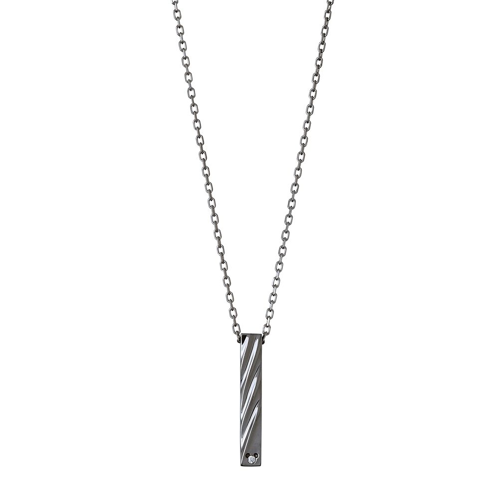 バータイプのトップ表面に、表情の異なるひねりのラインを立体的に施したネックレス。