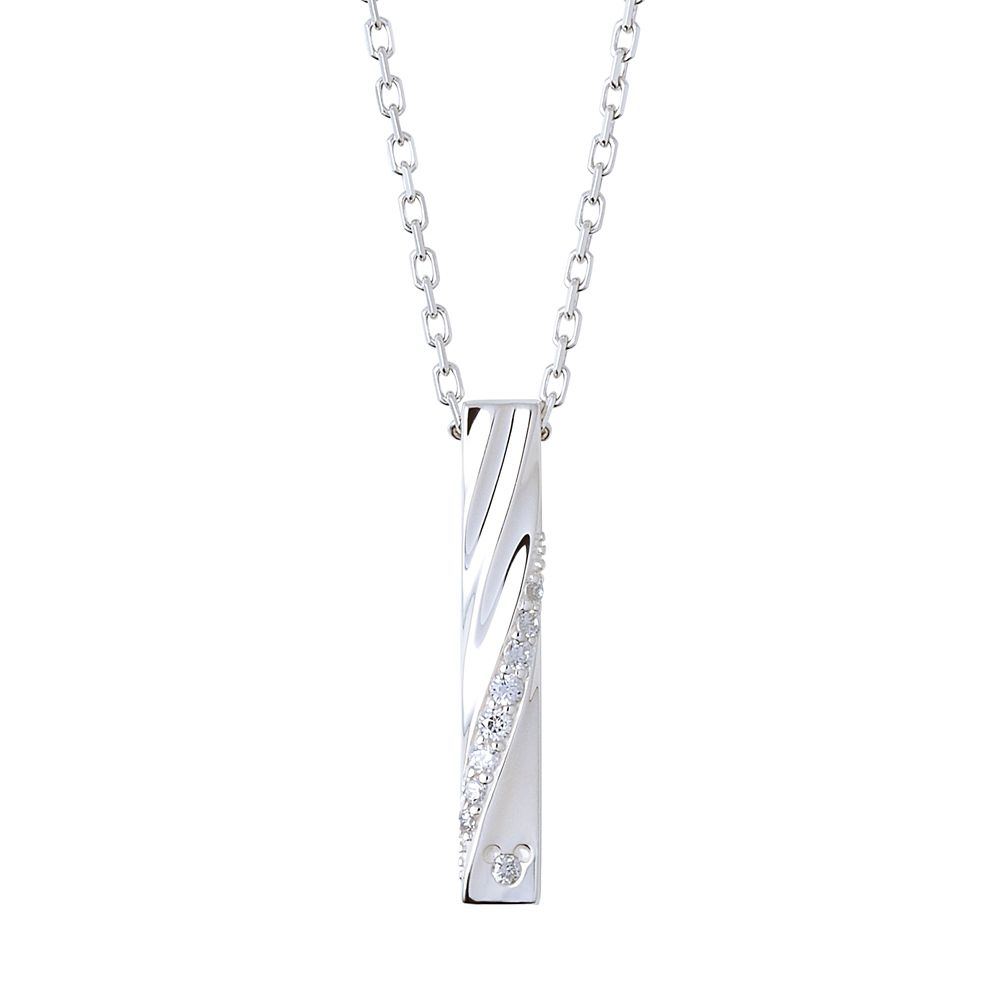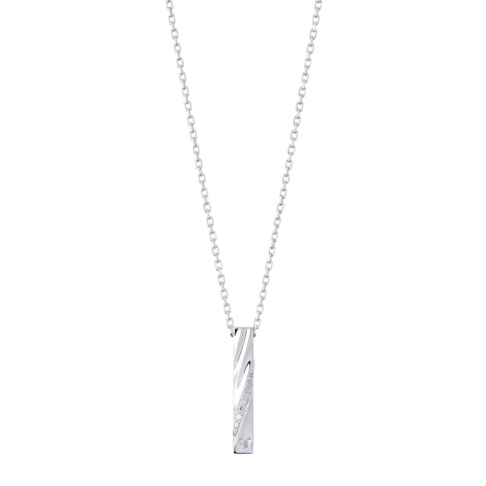 バータイプのトップ表面に、表情の異なるひねりのラインを立体的に施したネックレス。