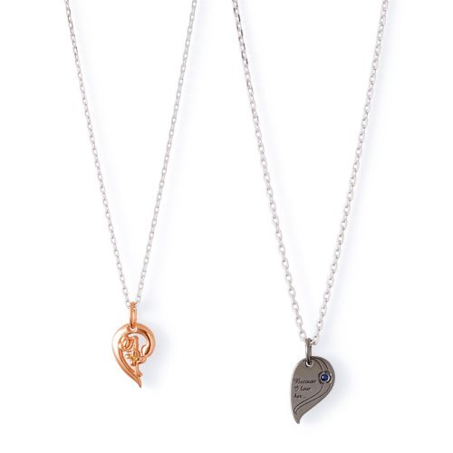 ふたりのネックレスを合わせるとハートになるDuetシリーズのペアネックレス。