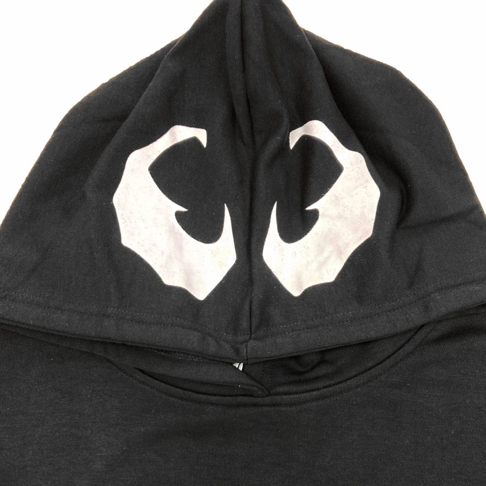 MARVELアパレルシリーズ。フードに ヴェノム アイを施した裏毛プルオーバーフーディ。MARVELファンにはたまらないスタイリッシュなデザインです。