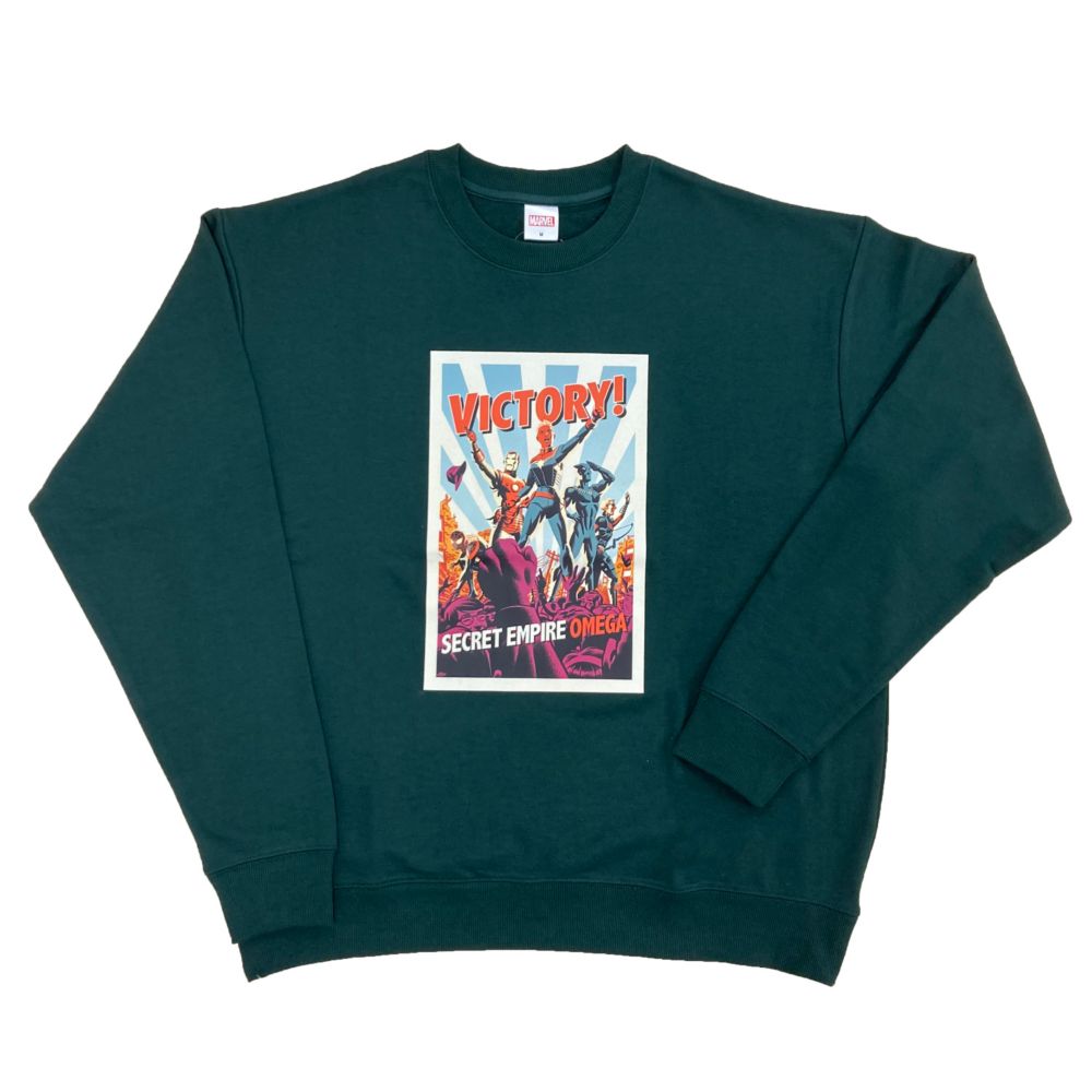 MARVELアパレルシリーズ。アベンジャーズファン注目の裏毛クルーネックスウェット。MARVELファンにはたまらないスタイリッシュなデザインです。