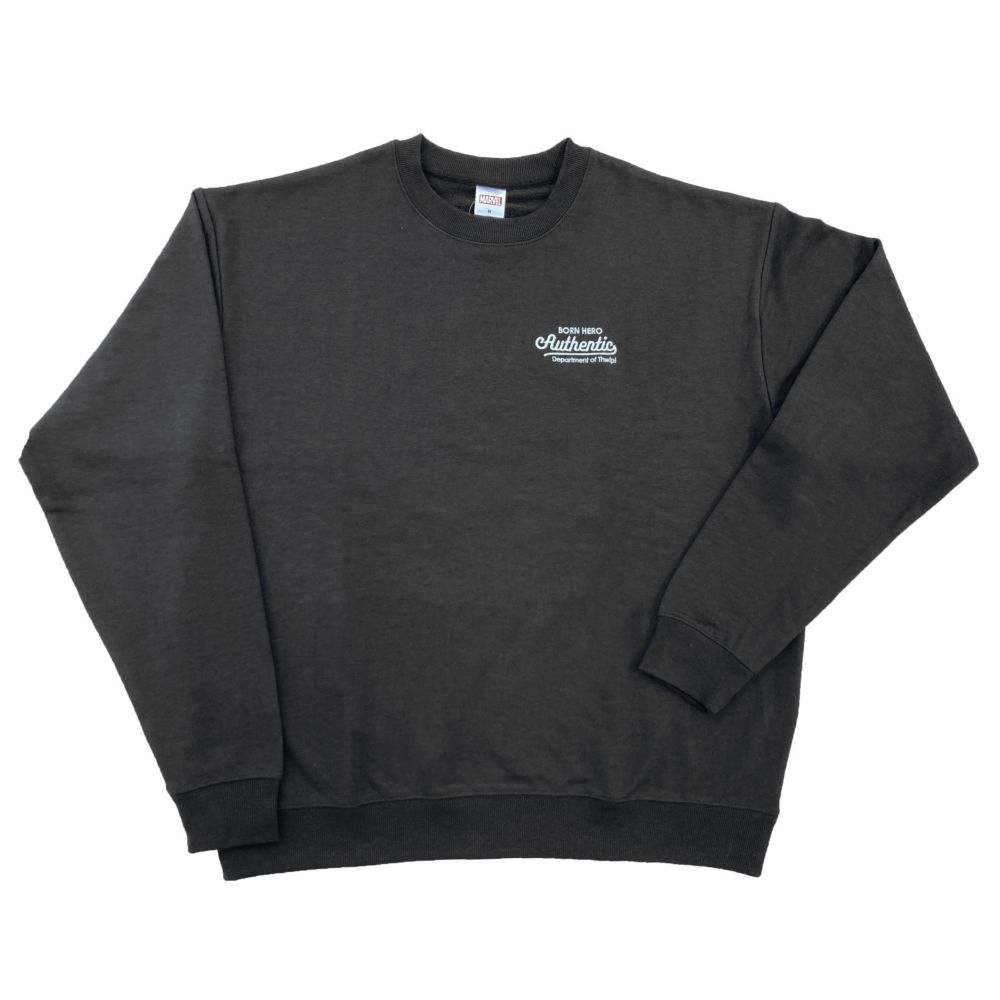 MARVELアパレルシリーズ。バックのスパイダーマンアートがポイントの裏毛クルーネックスウェット。MARVELファンにはたまらないスタイリッシュなデザインです。