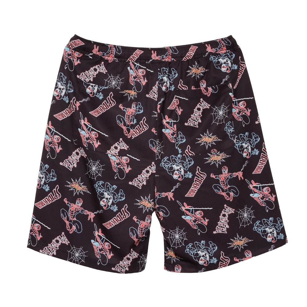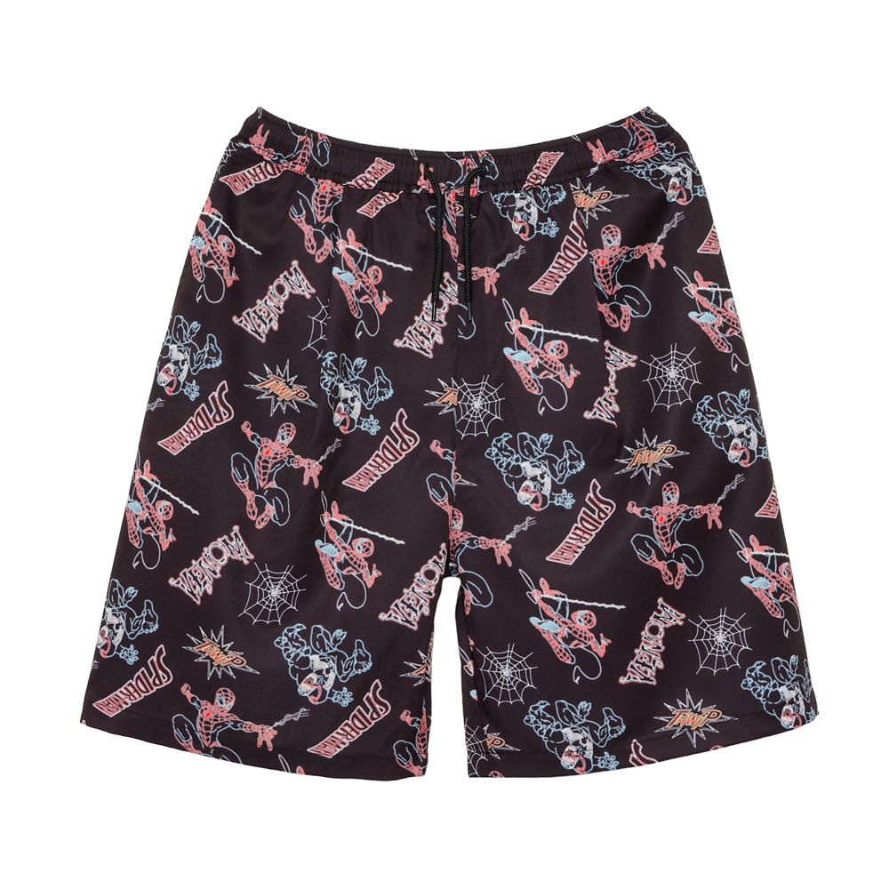 「MARVEL」キャラクターデザインの総柄ワイドハーフパンツ 。