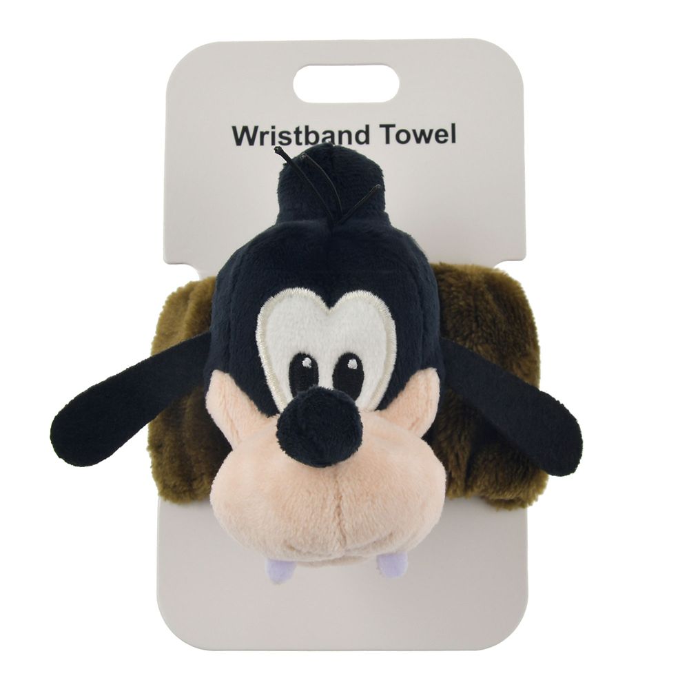ころんとしたフォルムとふわふわの手触りがたまらない、グーフィーのフェイスデザインのリストバンド。