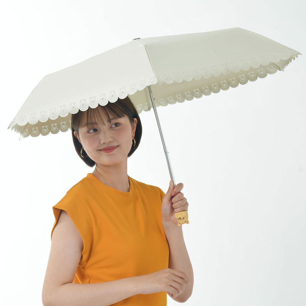 雨傘としても日傘としても使える。プーさんデザインの折りたたみ傘。