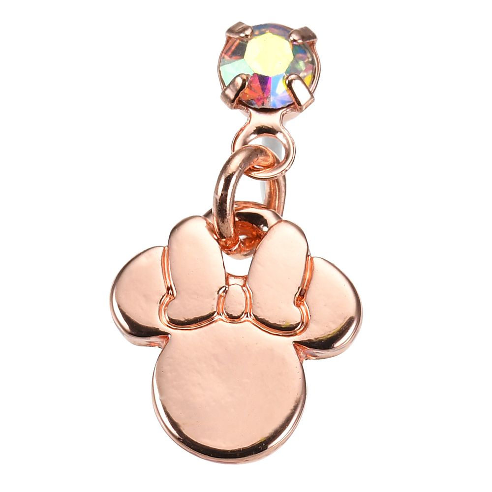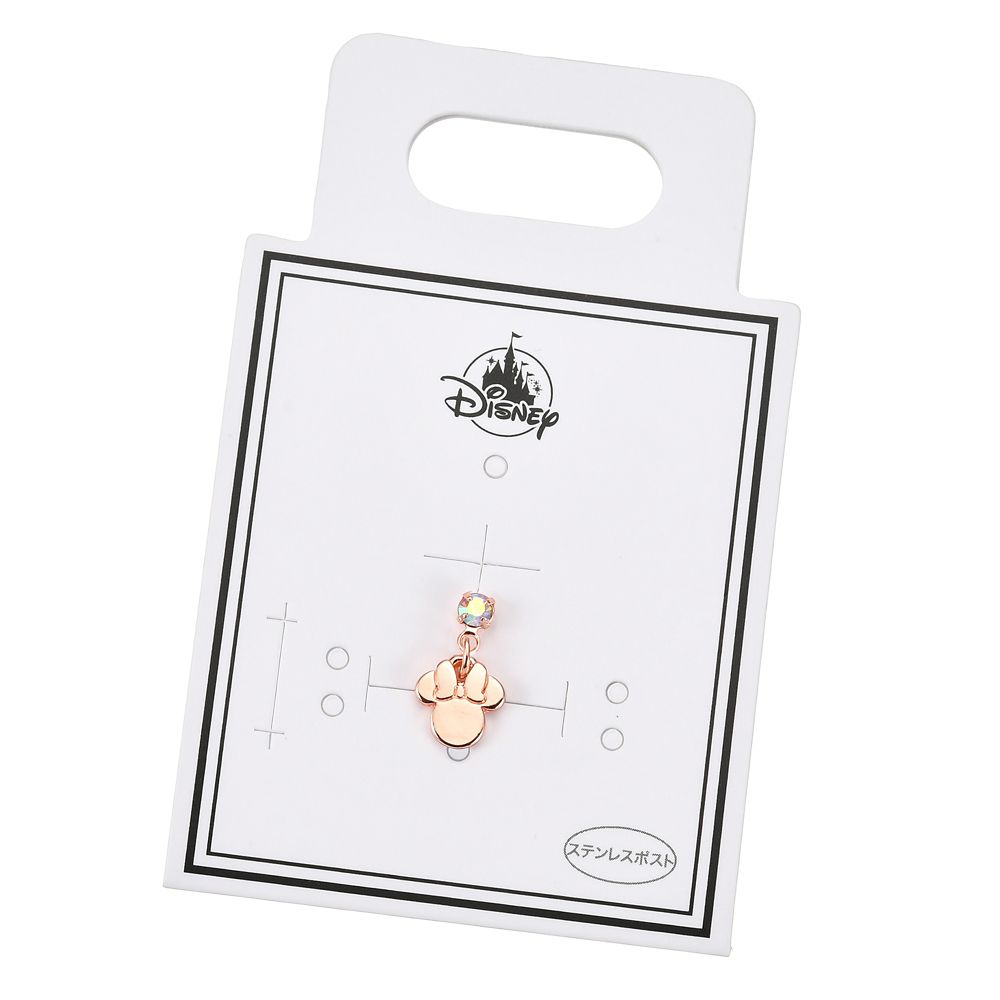 ミニーアイコンが小さく揺れる、ピンクゴールドカラーのピアス。きらめくオーロラカラーのストーンが華やかな印象です。