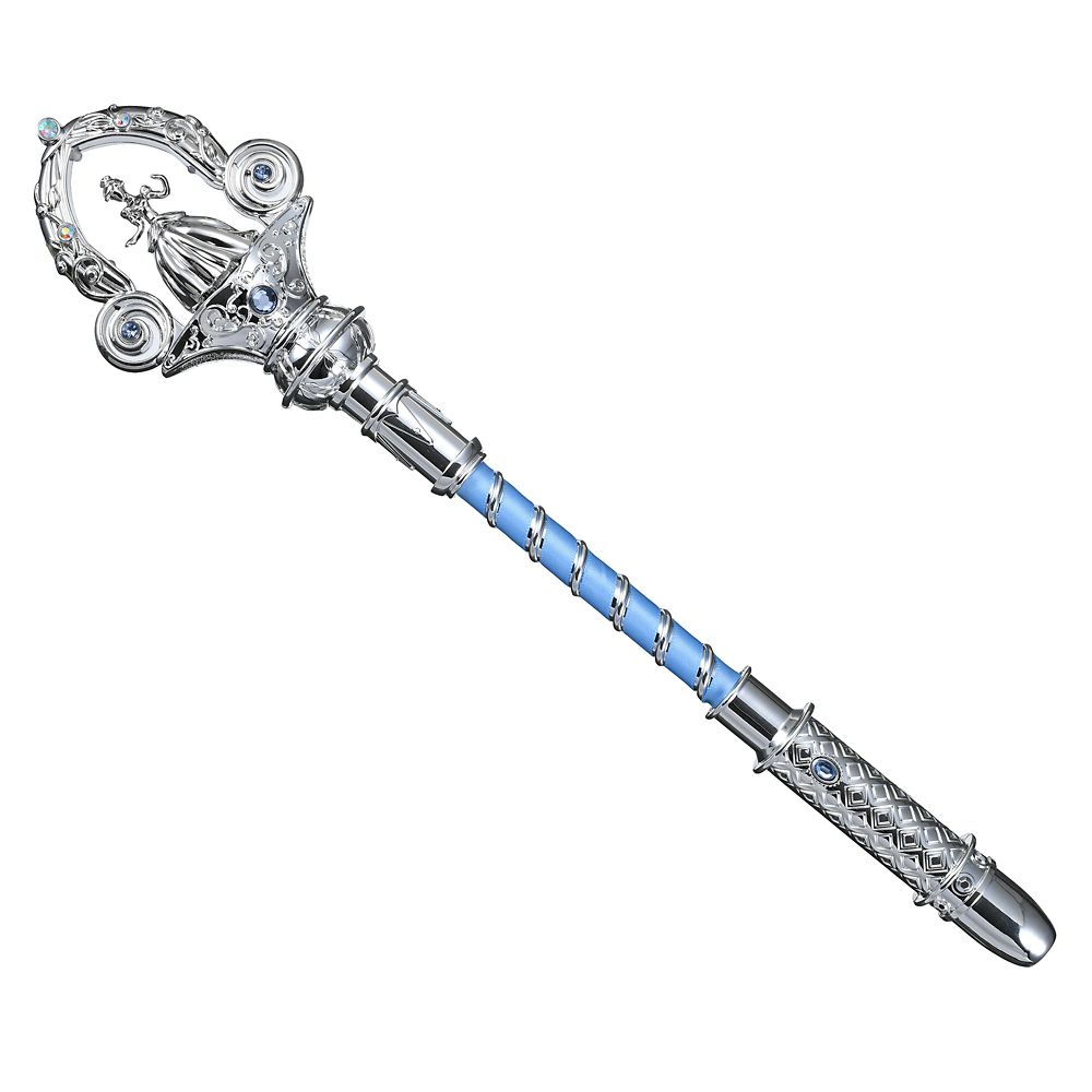 豪華な装飾が目を惹く銀色のステッキ。柄の部分にあるボタンを押すとライトアップ!ボタンを押す回数によって光り方が変わります。光に照らされたシンデレラのフィギュアが輝いて、とってもドリーミー♪