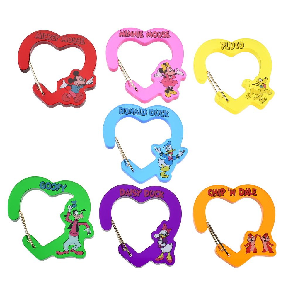 ハートモチーフにキャラクターを合わせたカラビナ。鮮やかな発色のクリアカラーでポップな雰囲気に仕上がっています。