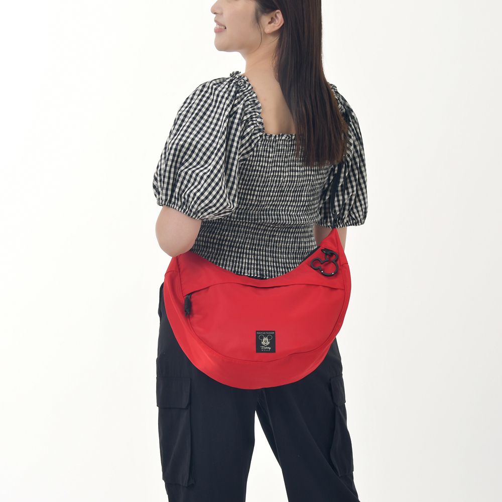 軽量で使いやすい、ミッキーデザインの赤色ショルダーバッグ。