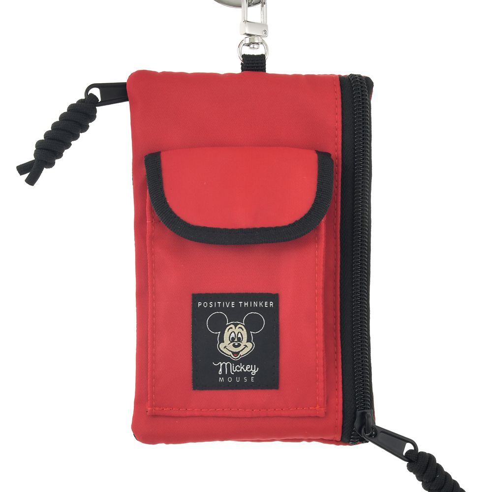 マルチに使える、ミッキーデザインのミニショルダーバッグ、ポイントになるレッド。