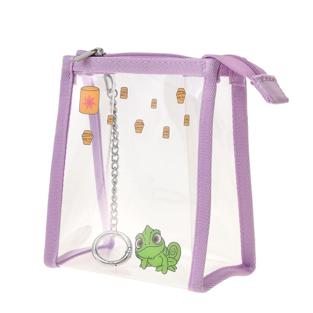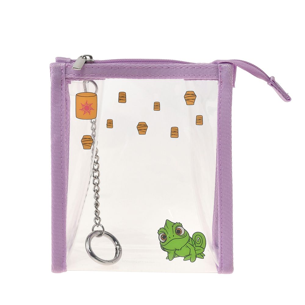 パープルのカラーパイピングがアクセントになったクリアポーチ。