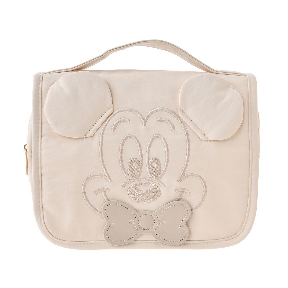 旅行に欠かせない大容量ポーチは、淡い色でまとめた落ち着きのある雰囲気がおしゃれ度抜群。