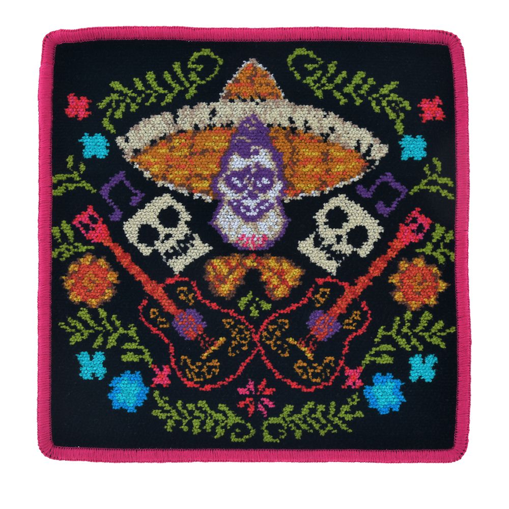 “死者の国”でもカリスマ・ミュージシャンとして生きる彼の顔(フェイス)をメインに、ギターや音符、草花などを配置し、物語の世界観をネオンカラーで美しく表現しています。