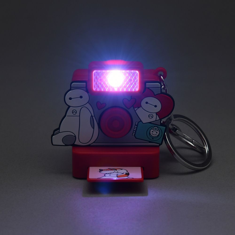 ボタンを押すと楽しくアクション。ベイマックス&モチのインスタントカメラ型キーホルダー。