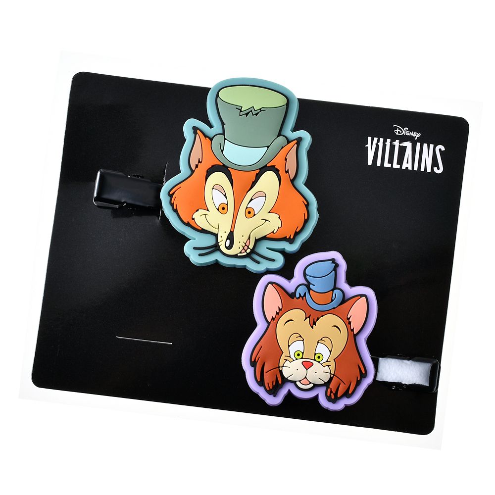 ディズニーヴィランズの正直ジョンとその相棒のギデオンのダイカットモチーフをあしらったヘアクリップです。